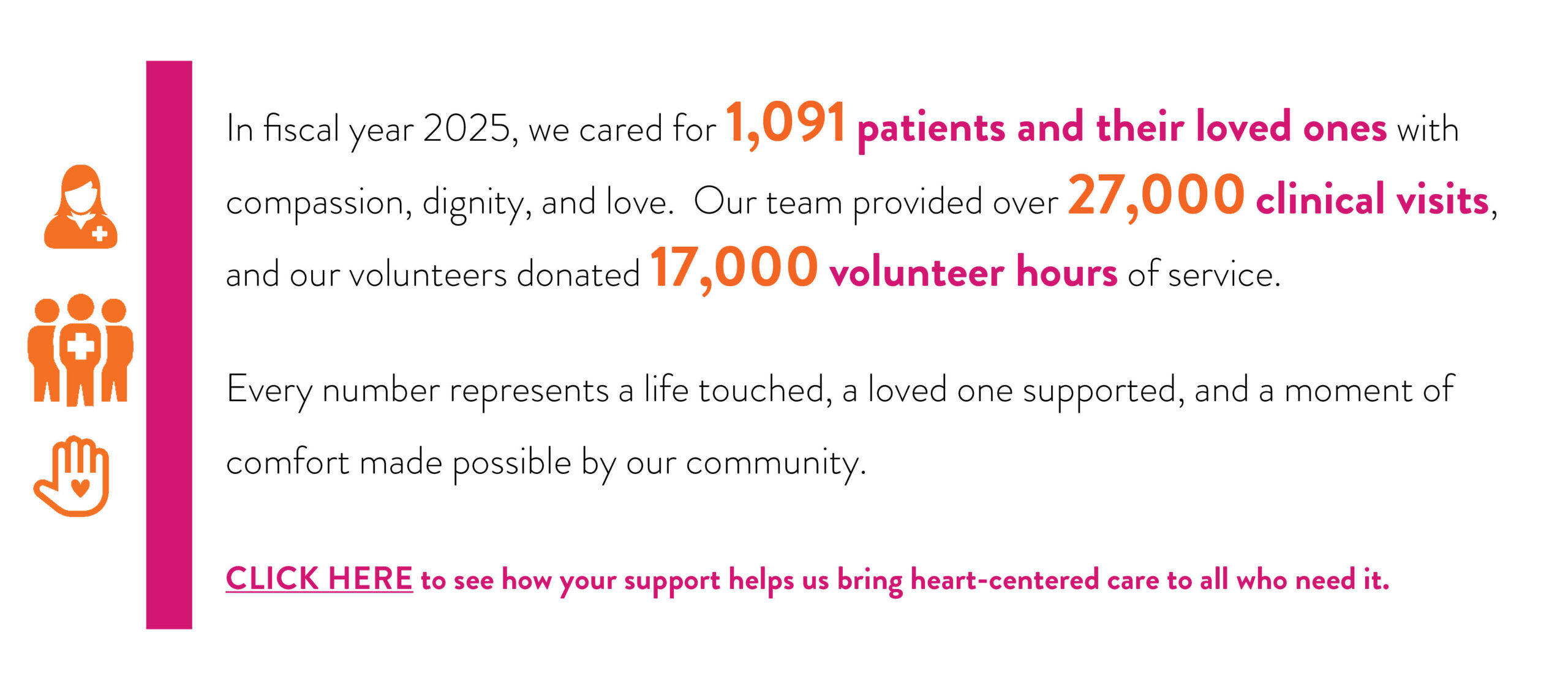 Regional Hospice is a 501(c)(3) nonprofit organization. Every dollar raised through our fundraising efforts directly supports our commitment to loving and compassionate care for patients of all ages. Regardless of their inability to pay, we take care of all patients and supplement costs for those who are not covered by the standard medicare benefit. We are beyond grateful for the generosity of our donors and volunteers that support our staff, hospice care and related programs.